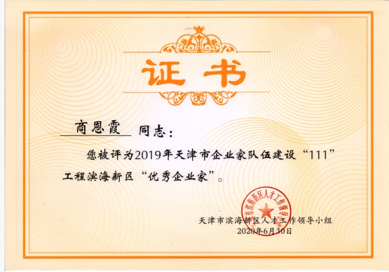 再獲殊榮!創(chuàng)舉總經(jīng)理商恩霞榮獲2019年濱海新區(qū)“優(yōu)秀企業(yè)家”稱號!