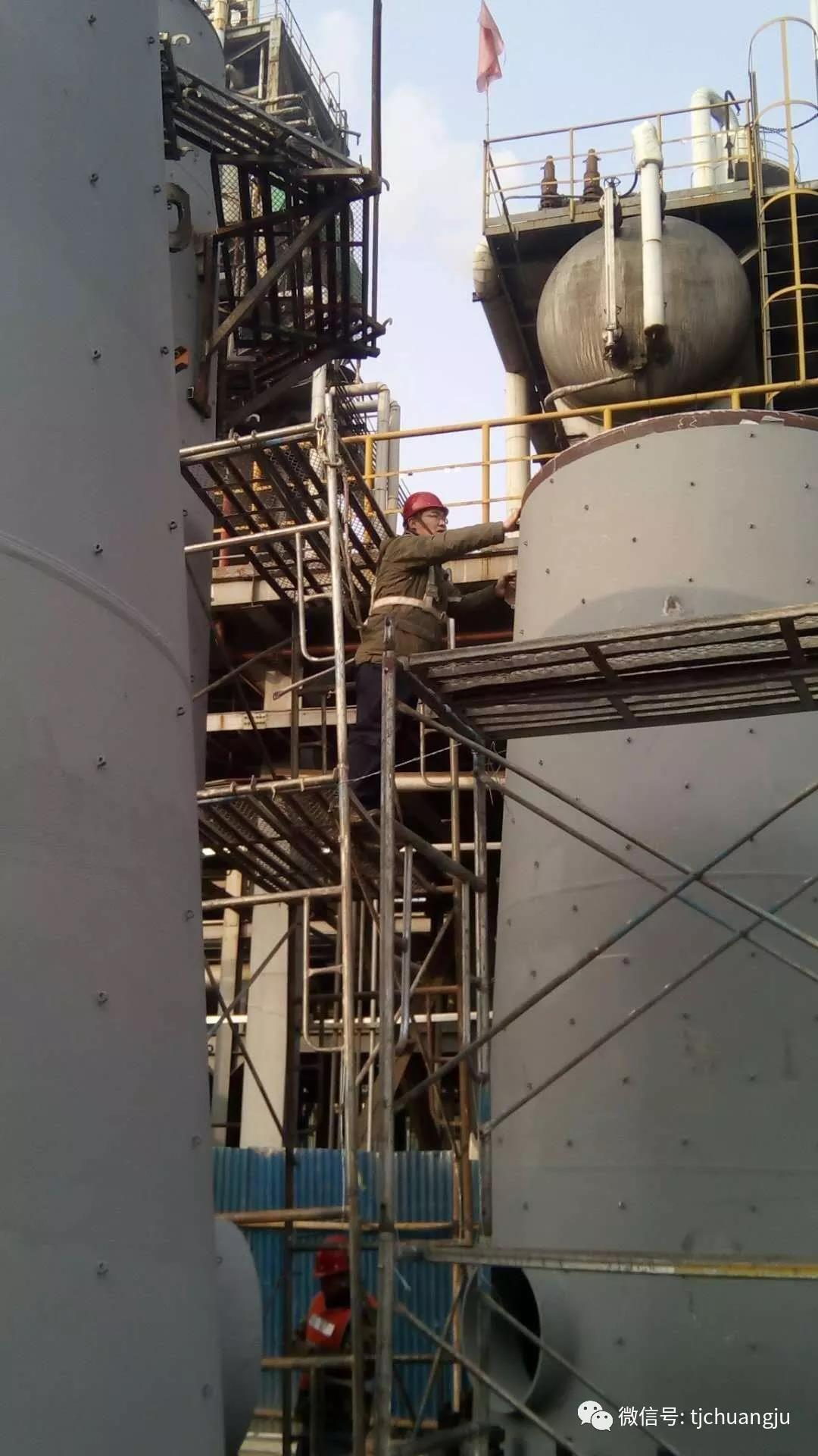 下圖為承德某公司蒸氨內(nèi)件改造工程現(xiàn)場(chǎng),工程從2018年12月28日開(kāi)始,直至2019年1月10日結(jié)束。寒風(fēng)中行人匆匆,露天工作的工程部同事們的辛苦可想而知。