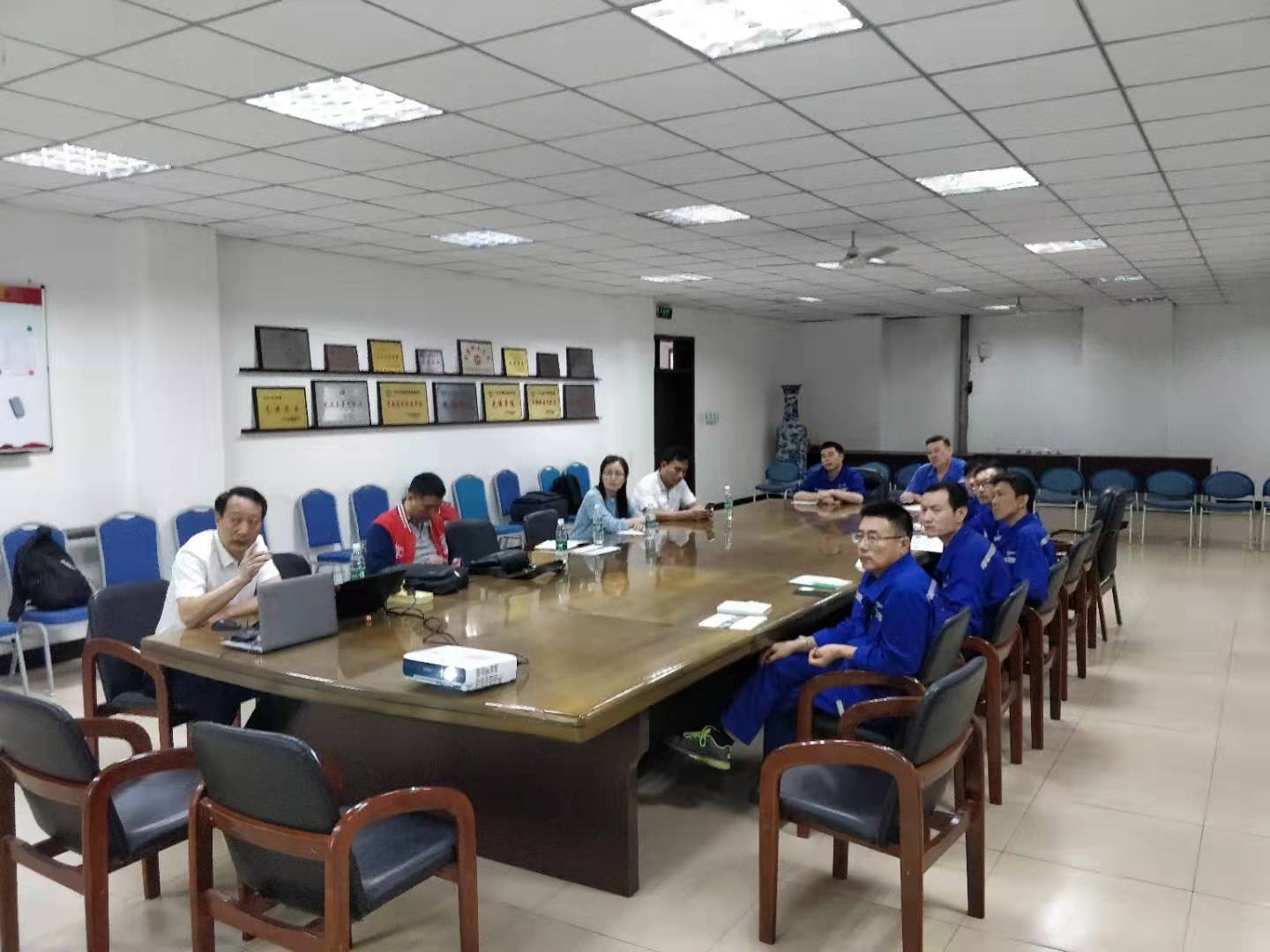 技術(shù)團隊抵達現(xiàn)場后與大化集團任總工、張廠長,孫副廠長及相關(guān)部門主管進行了深入的交流。創(chuàng)舉公司王董及技術(shù)代表分別對公司生產(chǎn)經(jīng)營情況、發(fā)展歷程以及技術(shù)產(chǎn)品進行了介紹,重點闡述了創(chuàng)舉新型CJ系列噴射態(tài)塔盤技術(shù)在石化行業(yè)的應(yīng)用情況。