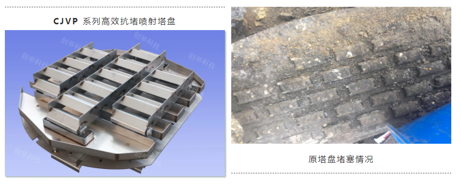 為解決原塔盤堵塞嚴(yán)重的問題,該項目采用我公司最新研發(fā)的CJVP 系列高效抗堵噴射塔盤,無易堵部件,在保證塔板效率的同時兼顧抗堵的性能。