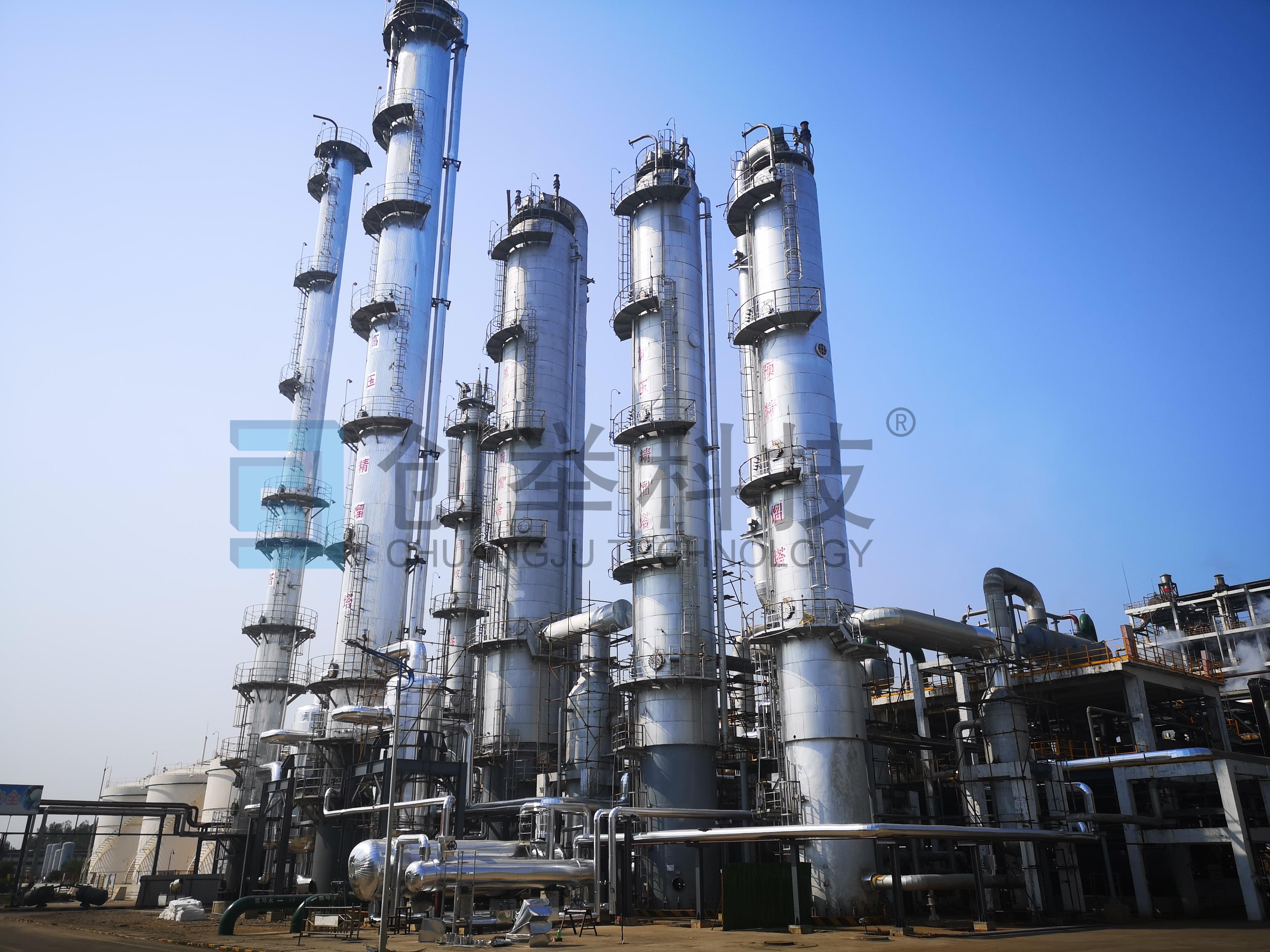 2019年9月15日,由天津市創(chuàng)舉科技股份有限公司(以下簡稱“創(chuàng)舉科技”)承攬的兗礦集團(tuán)國宏化工有限責(zé)任公司(以下簡稱“國宏公司”)65萬噸/年甲醇精餾裝置改造項(xiàng)目一次投料開車成功。至今,裝置已滿負(fù)荷運(yùn)行18個(gè)月,達(dá)到日產(chǎn)精甲醇2050噸以上,精甲醇中的乙醇含量100 ppm以內(nèi),噸甲醇蒸汽耗量僅0.85噸,節(jié)能降耗及提質(zhì)增效明顯。