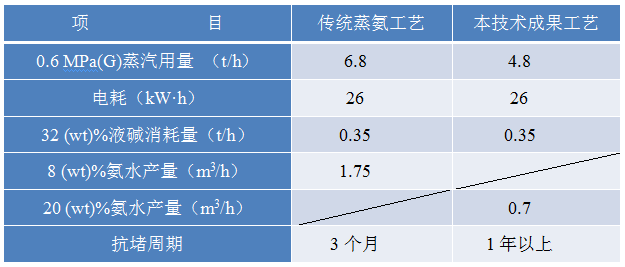 (4) 傳統(tǒng)蒸氨因堵塞問(wèn)題,需1-3個(gè)月進(jìn)行檢修,本技術(shù)成果設(shè)備每年只需檢修一次,節(jié)省檢修費(fèi)用約4.5萬(wàn)元。