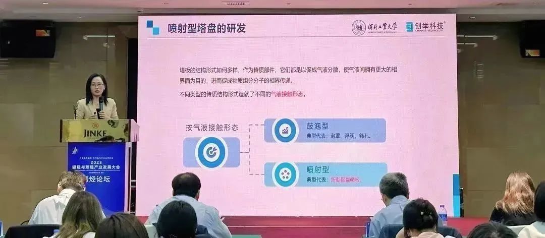 創(chuàng)舉科技高級工程師就“先進(jìn)塔器技術(shù)在節(jié)能降碳方面的應(yīng)用實效”做主題報告,圍繞先進(jìn)塔器技術(shù)的研發(fā)歷程,應(yīng)用原理及在節(jié)能降碳方面的應(yīng)用實效進(jìn)行分享。