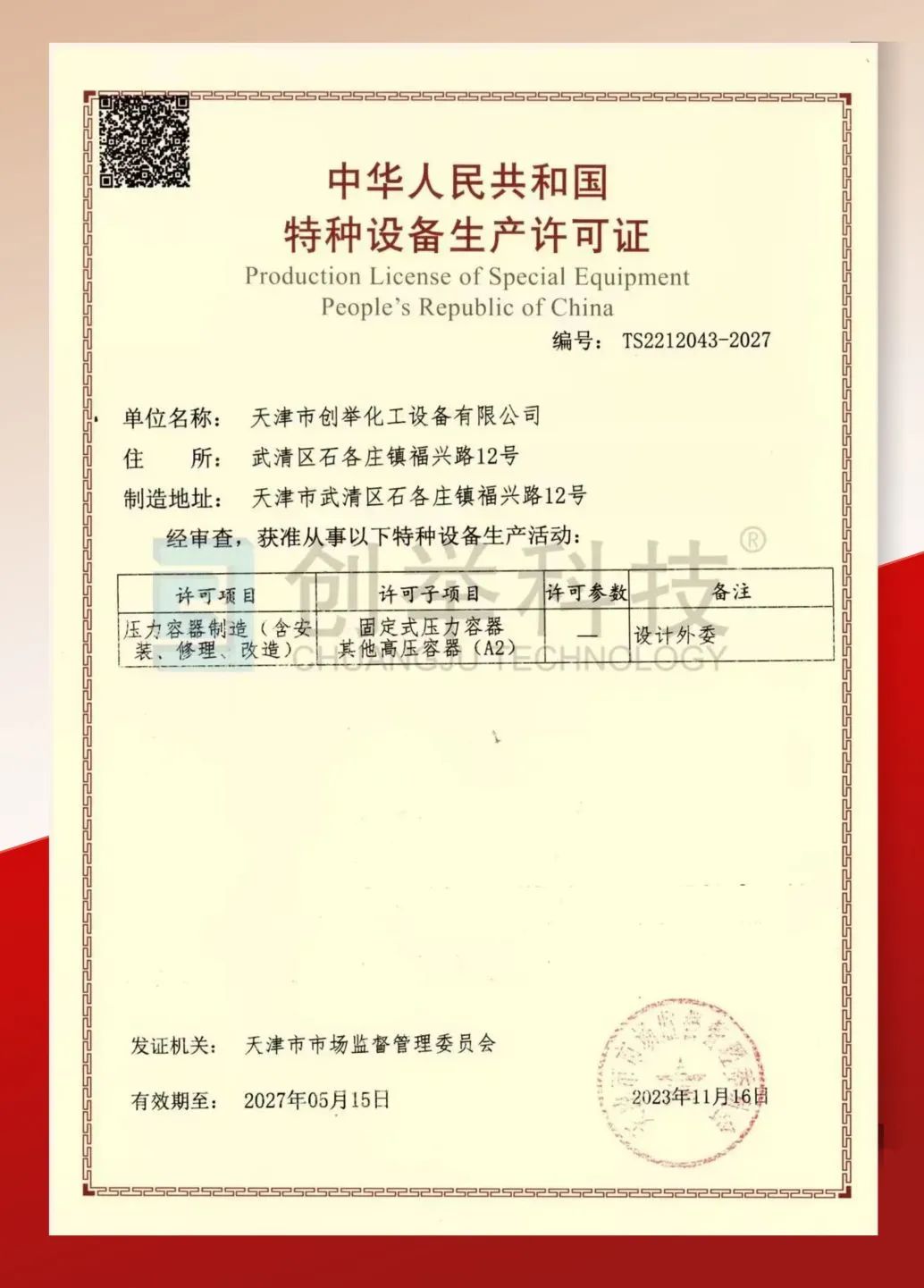 近日,國(guó)家市場(chǎng)監(jiān)督管理總局委托天津特檢協(xié)會(huì)對(duì)天津市創(chuàng)舉化工設(shè)備有限公司(以下簡(jiǎn)稱“創(chuàng)舉化工設(shè)備”)A2壓力容器制造資質(zhì)進(jìn)行現(xiàn)場(chǎng)評(píng)審。