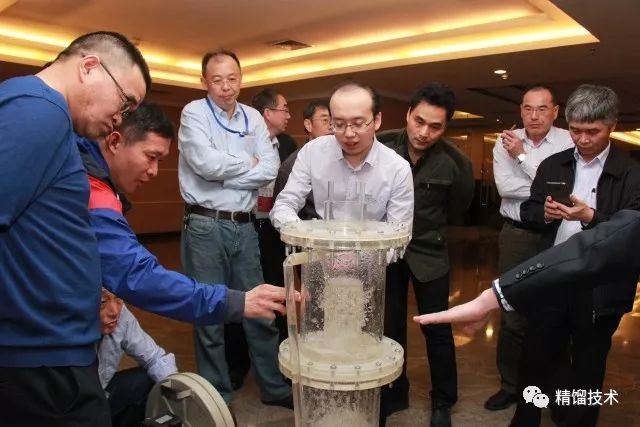 嘉賓們還觀摩了創(chuàng)舉帶來的冷模實驗塔,對逆流系列塔板的技術有了直觀的認識。